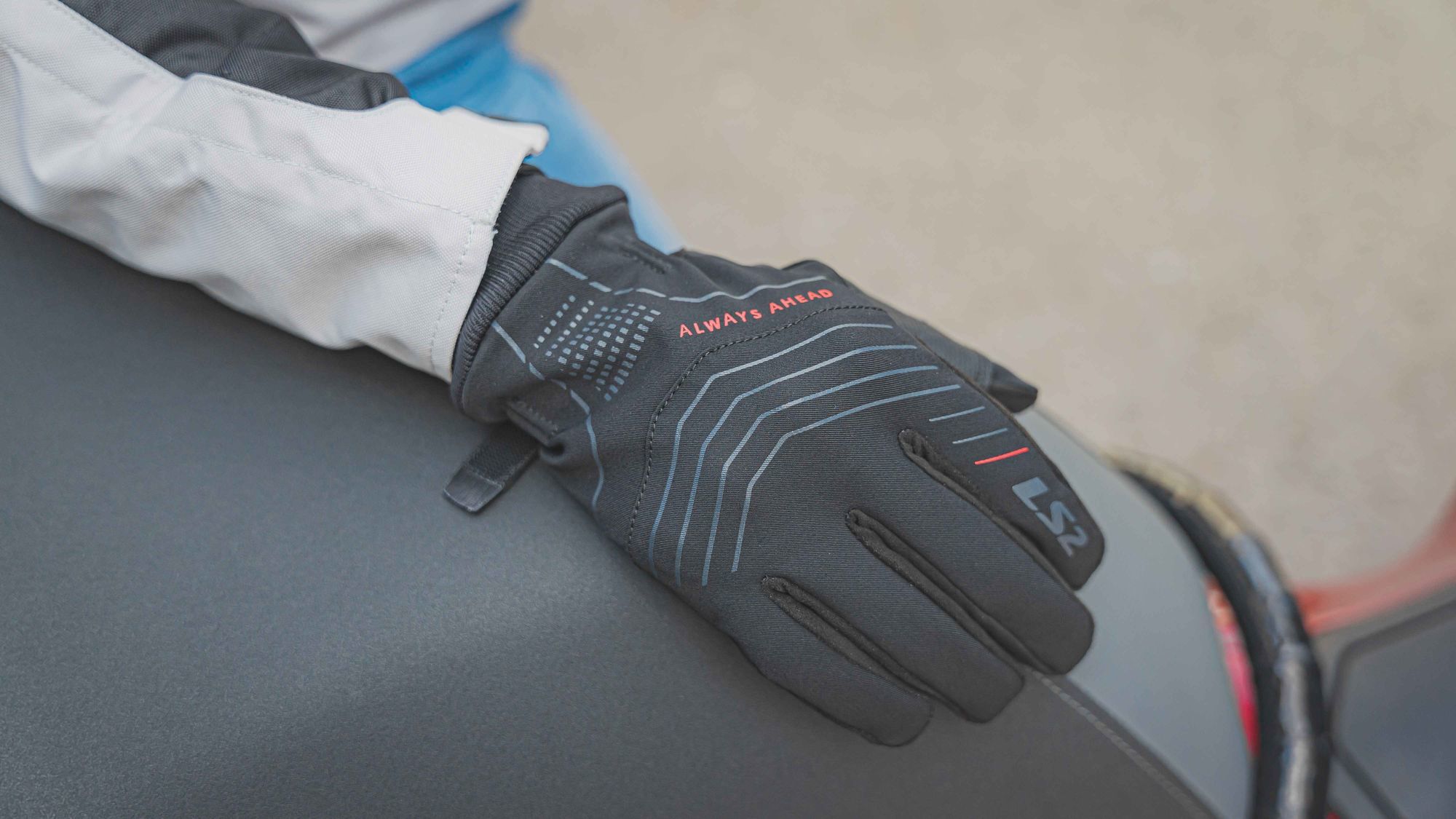 Guantes cómodos y resistentes al agua para condiciones climatológicas frías. Palma y dedo índice reforzados. Dedo índice compatible con pantallas táctiles para poder usar con smartphones y sistemas GPS.