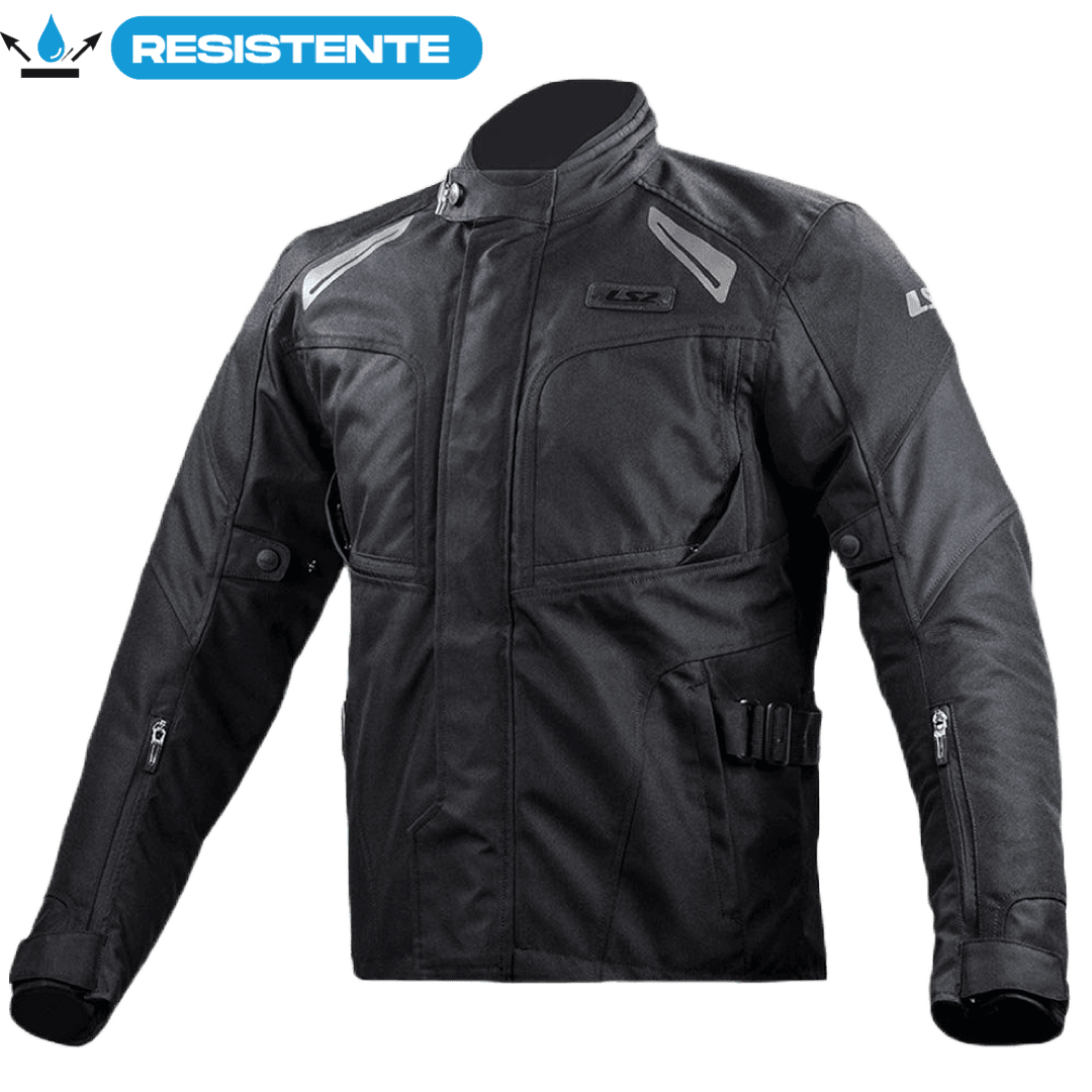 Chaqueta impermeable touring con forro térmico desmontable. Paneles de ventilación en pecho y espalda. Brazos y cintura ajustables. Cremallera para acoplar a los pantalones. Protectores desmontables en codos y hombros.