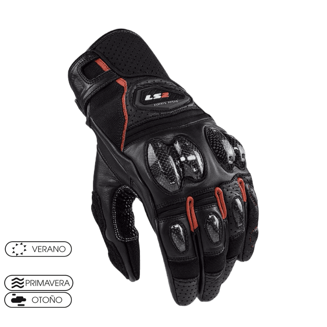 Guantes de piel altamente resistentes con protección de carbono en nudillos y dedos. Refuerzos extraresistentes en los nudillos y la palma de la mano. Parche de silicona antideslizante para maximizar el agarre. Compatibles con pantallas táctiles.